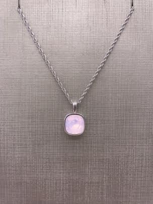 This beautiful necklace has a Swarovski crystal, in a bezeled cushion cut setting!